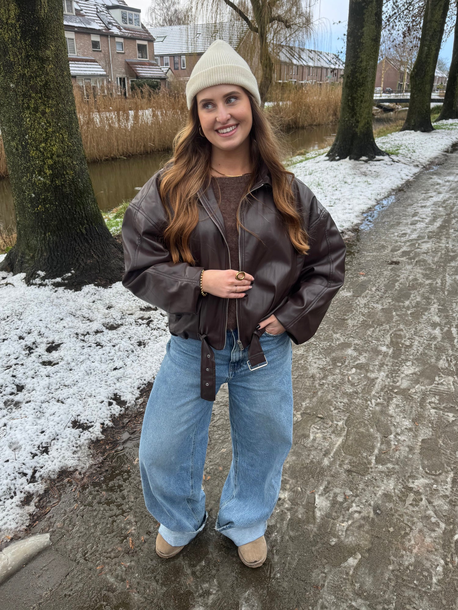 Brown faux leather bomber Jacket
