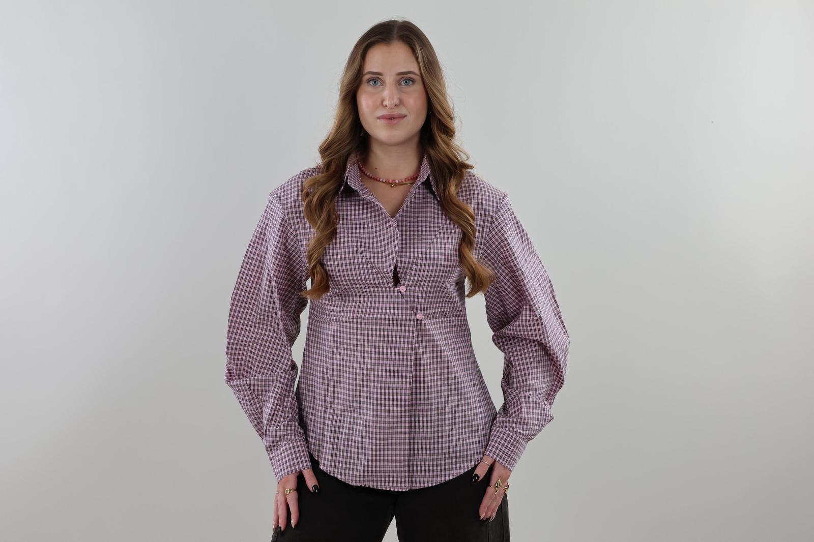Checked button Blouse - Pink