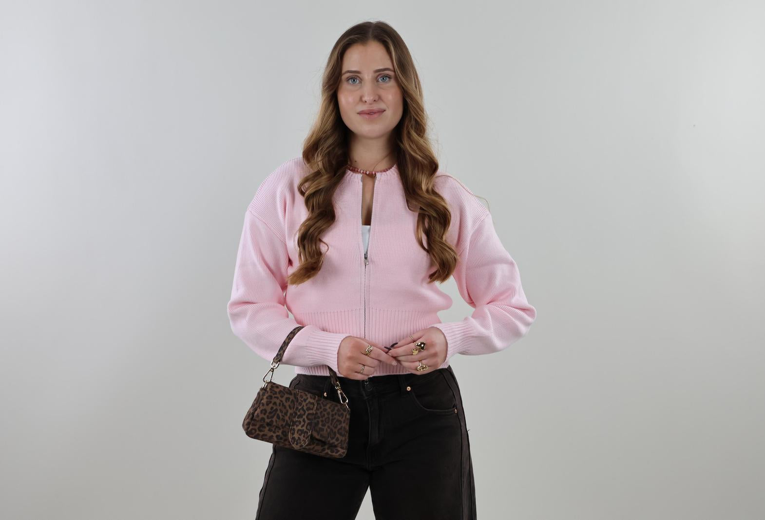 Zip-up knit Cardigan - Pink